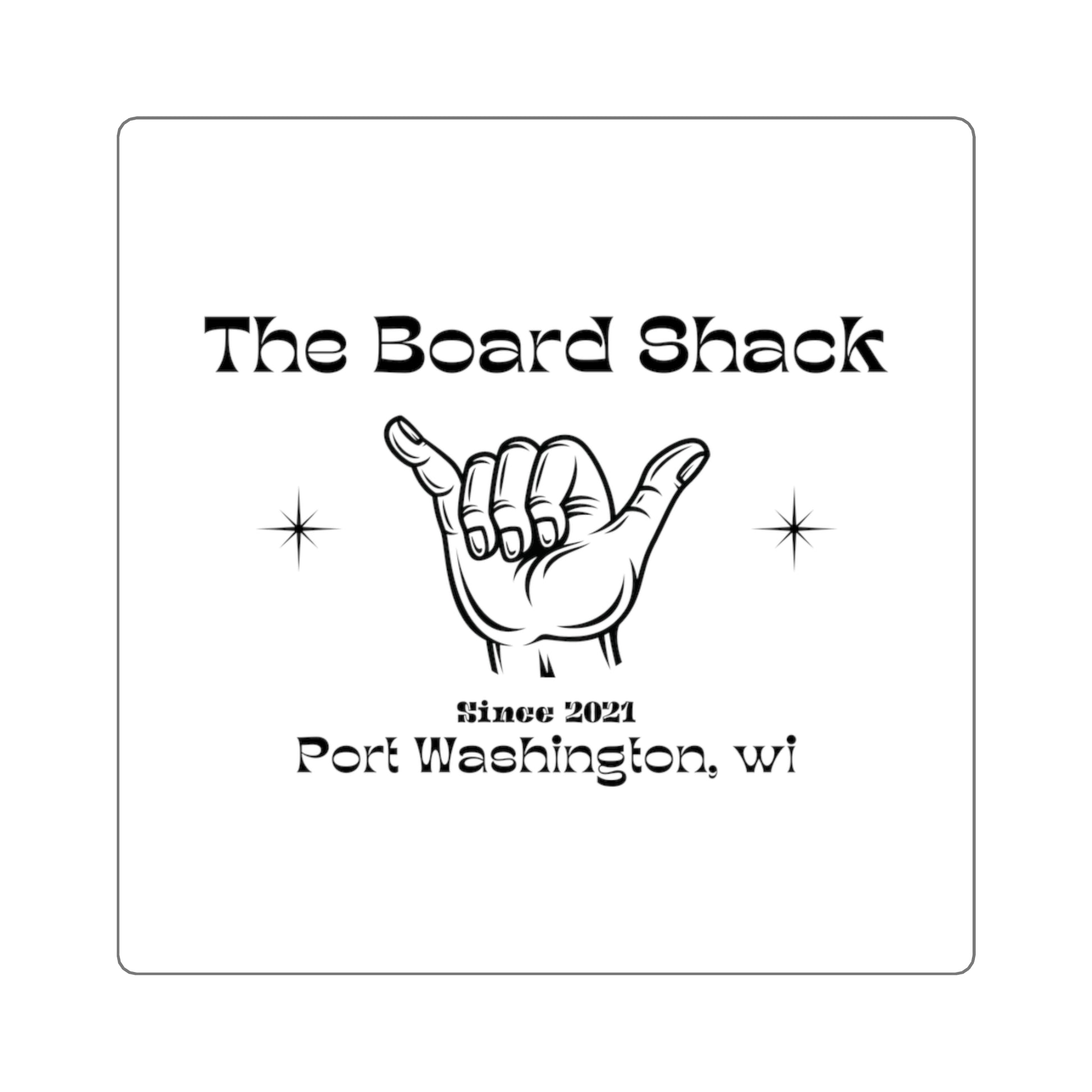 You cannot go wrong with a classic square-style sticker. The clean, crisp edges and simple-but-elegant look make this the most straightforward and popular option. They sport The Board Shack SHAKA design!